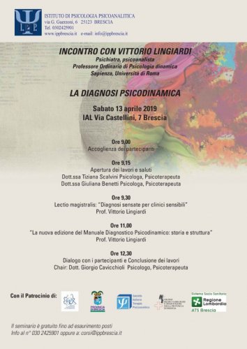 Sabato 13 aprile si terrà a Brescia il convegno la diagnosi psicodinamica. Nel corso dell'incontro prenderà la parola Vittorio Lingiardi. In allegato il programma completo.