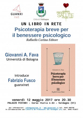 Venerdì 12 alle 20.30 Giovanni A. Fava presenterà il suo saggio "Psicoterapia breve per il benessere psicologico" al Palazzo Festari (Corso Italia 63) del comune di Valdagno (VI).