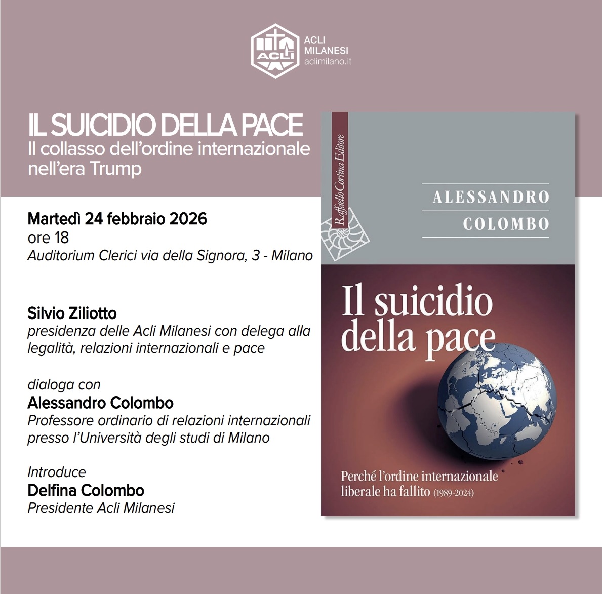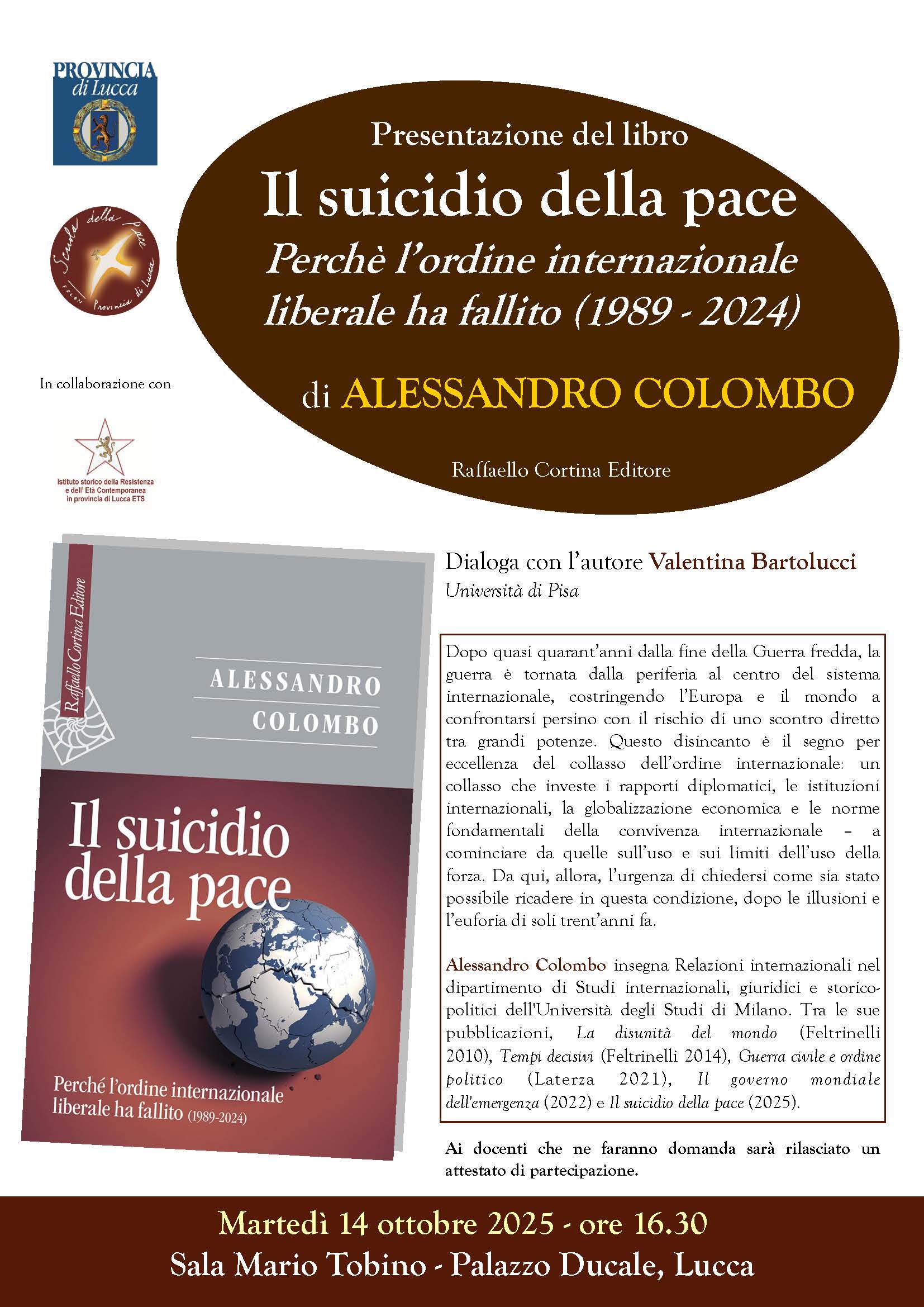 I prossimi appuntamenti con Alessandro Colombo e Il suicidio della pace.