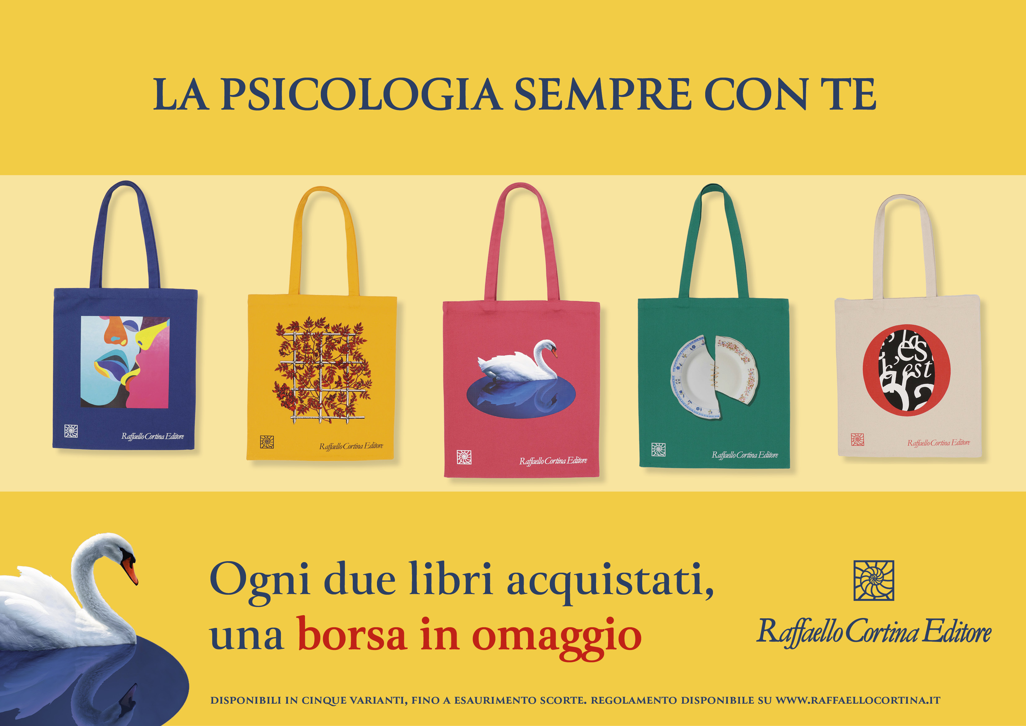 L'acquirente di almeno due volumi della selezione di titoli Raffaello Cortina Editore nei termini indicati all'articolo 3 avrà diritto al riconoscimento di un omaggio, consistente in una Tote Bag di tela che verrà consegnata/recapitata contestualmente alle copie dei volumi acquistati.