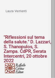 | Titolo | "Riflessioni sul tema della salute." D. Lazzari, S. Thanopulos, S. Zampa. CdPR, Serata Intercentri, 20 ottobre 2022 |